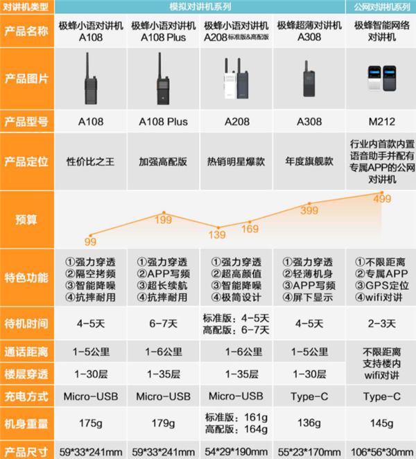 一般的对讲机都比较厚重,而小米有品上架了一款极蜂超薄对讲机,仅重137g,厚16mm,非常轻便,握持手感特别好。